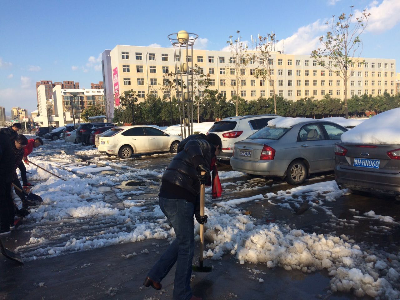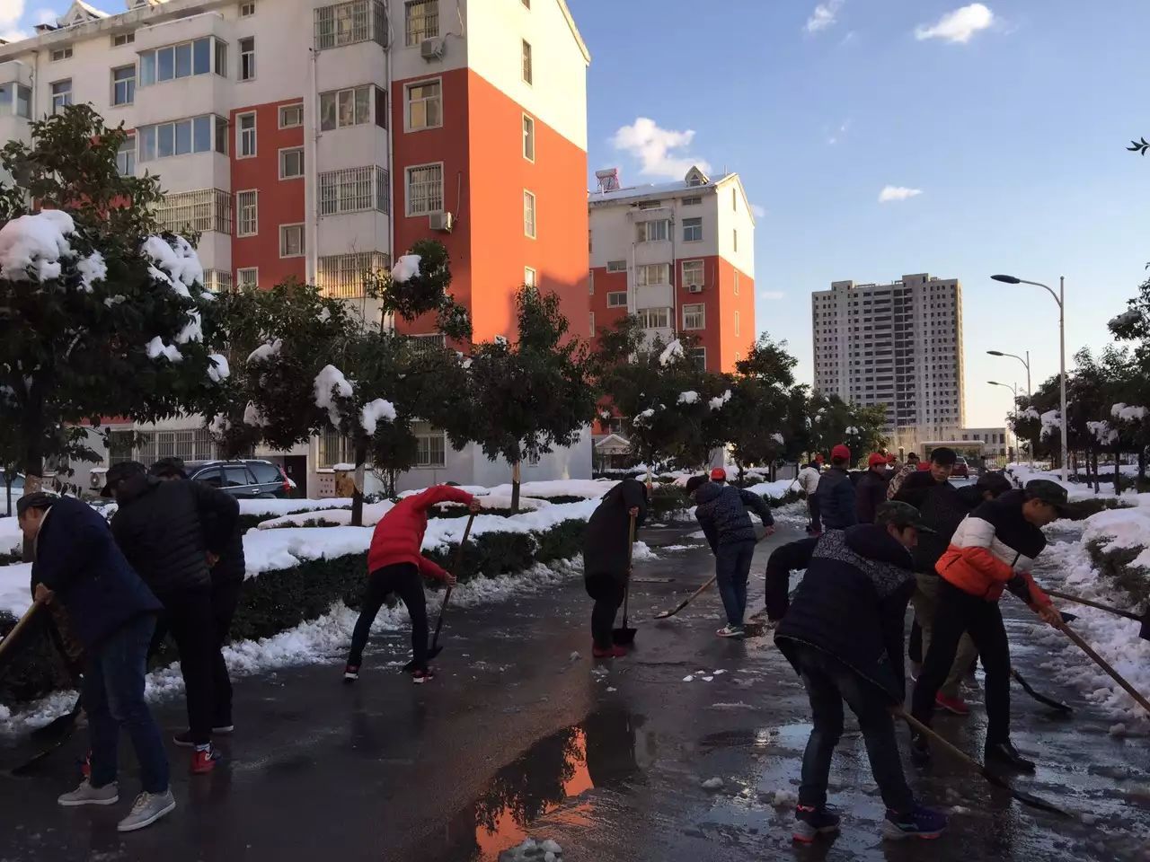 自11月23日傍晚开始,焦作地区迎来普遍降雪,至25日清晨,厚厚的白雪已经覆盖了整个校园。银装素裹的sunbet,仿佛笼罩在一片白茫茫的雪海之中,别有一番韵味。雪景虽美,但也给师生上课出行带来诸多不便。鉴于此,sunbet决定组织全体师生开展扫雪活动。